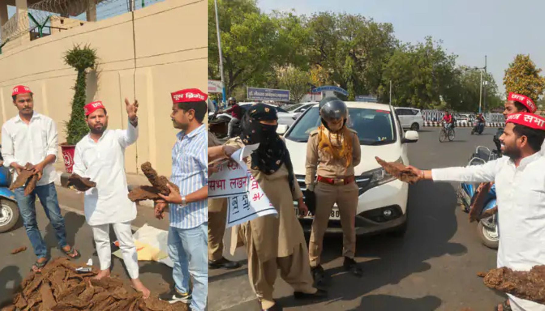 उत्तर प्रदेश: की राजधानी लखनऊ में एलपीजी गैस की किल्लत को लेकर समाजवादी पार्टी के कार्यकर्ताओं ने अनोखा विरोध प्रदर्शन किया। समाजवादी छात्र सभा के सदस्यों ने विधान भवन के सामने उपले (कंडे) बांटकर भाजपा सरकार के खिलाफ नाराजगी जताई।